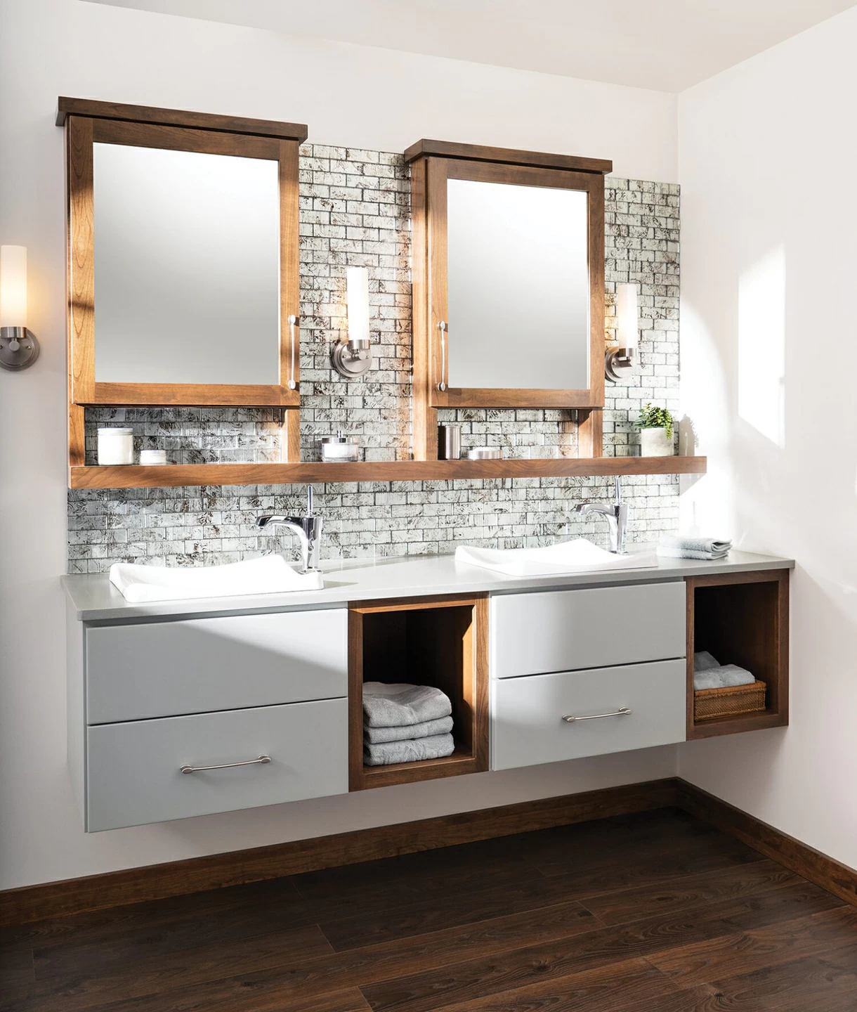 Bria cabinetry features European-inspired design with a luxurious finish. Frameless (full-access) construction inspired by European cabinet-making, blending high-tech with high-fashion sensibilities. Frameless construction optimizes for full access to the interior and storage, while its diverse array of styles speaks directly to the imaginative homeowner in need of specific function and elegant design.