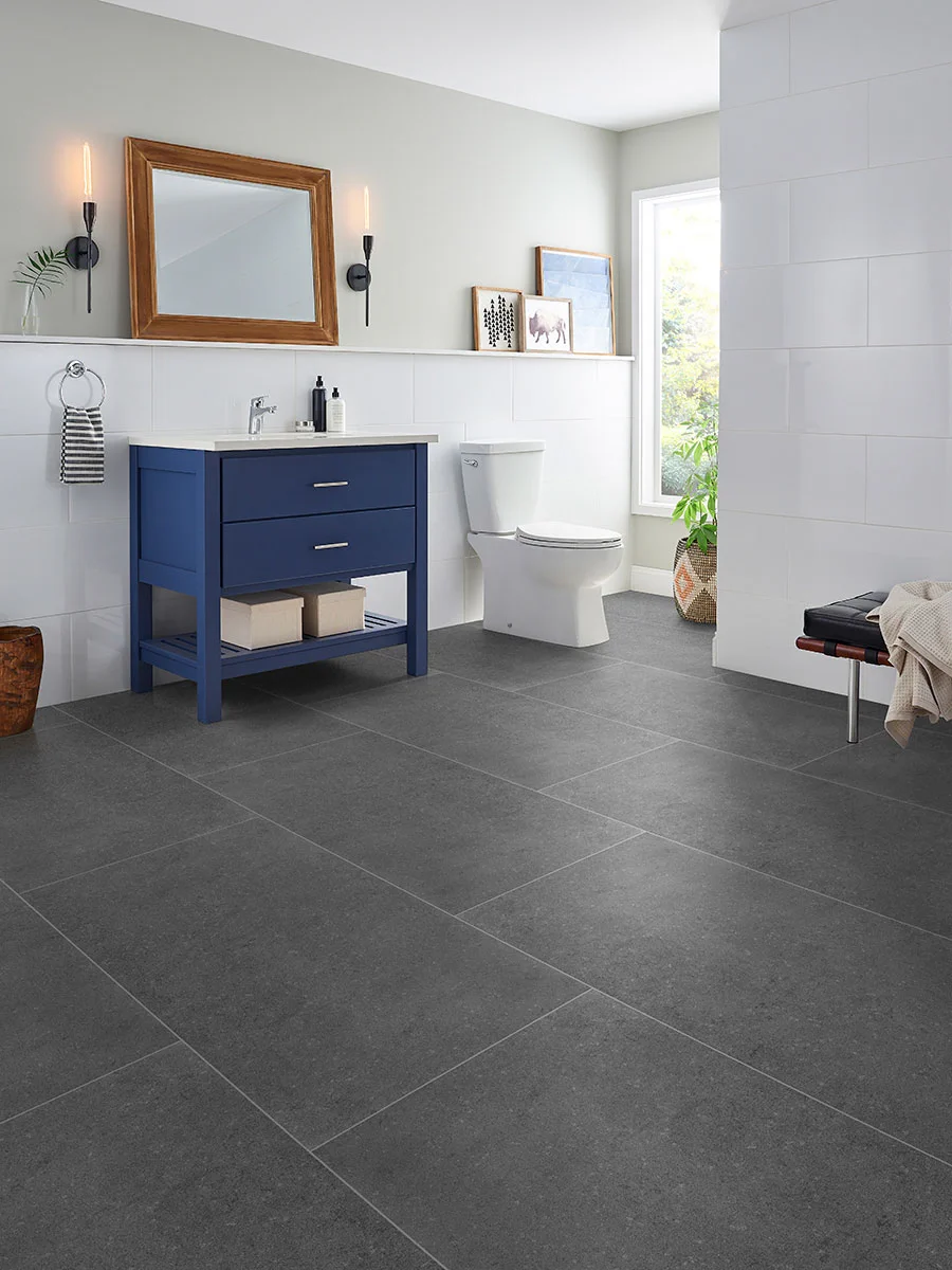 Sleek, contemporary and sophisticated, the Dimensions series brings an urban edge with concrete-look porcelain. This minimalistic style is available in six colors, ranging from Glacier white to Graphite grey, and also offers a matching bullnose and 2x2 mosaic. The fullbody porcelain is rectified and long lasting for a nearly seamless finish.