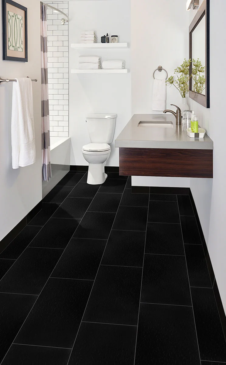 Porcelain Matte Tile Black Domino Porcelain tile used alone, or with white tiles for a checkerboard, lends a chic vintage look to kitchens and baths. Black tiles are available in popular large format sizes including 12x24 and 24x24 to allow for creative installations and designs. Whether you desire a more modern matte finish, these porcelain tiles are perfect for countertops, floors, backsplashes, and accent walls throughout homes and commercial properties.