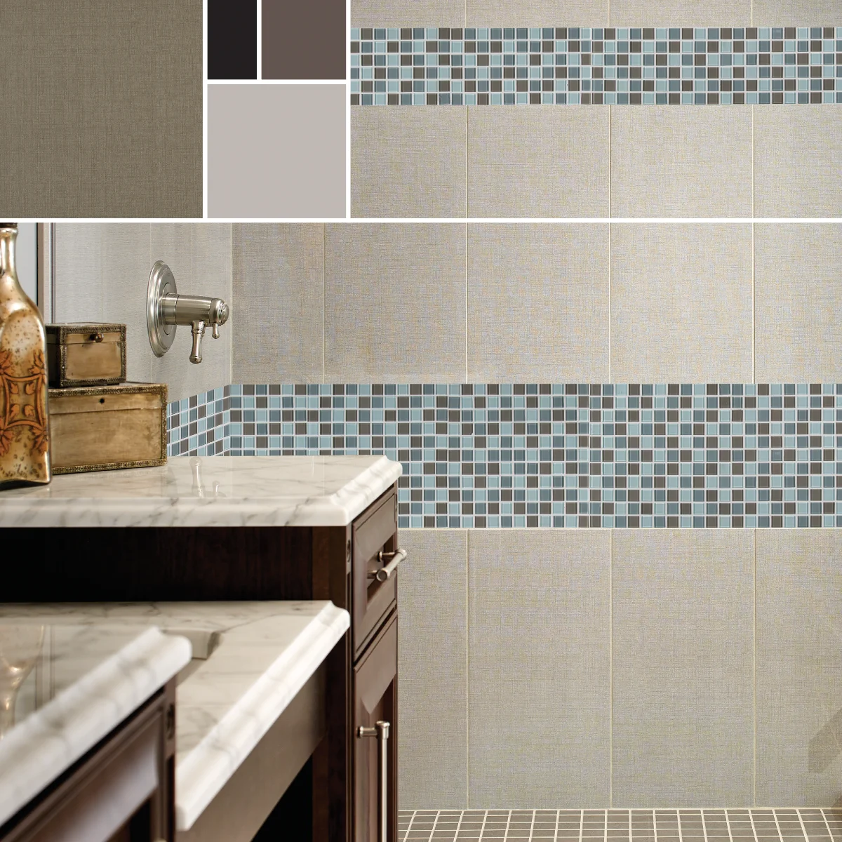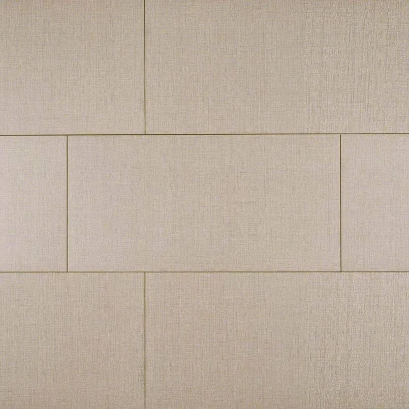 Porcelain Matte Tile Glacier Porcelain Tile from the Loft Collection, features mid-tone grays in a pattern reminiscent of fine natural linen in 12x24 large format tiles. Designed to coordinate with tiles from the Dimensions Focus collections, they are ideal to create beautiful countertops, flooring, shower and bathtub surrounds, and backsplashes throughout the home, and in commercial properties.