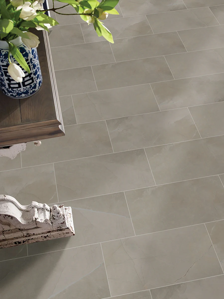 The Sande Collection features stunning stone looks in an easy-care porcelain; perfect for the modern family who desires elegance and practicality. In three understated tone-on-tone shades—Grey, Ivory, and Cream, Sande complements any color scheme you throw at it. Impressively durable and maintenance-free, these polished porcelain tiles make signature statements on floors, accent walls, showers, and backsplashes. Available in 2x4”, 12x24”, large format 24x48” tile and bullnose tile, Sande gives your kitchen, bathroom, office, or other space designer looks with staying power.