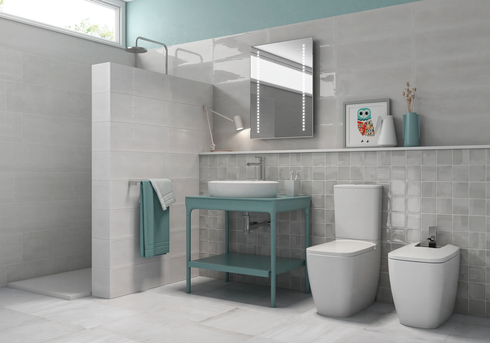 The Arlette collection replicates the neutral tones of concrete in a bright, wavy and irregular surface, creating a handmade look that will warm up any space.